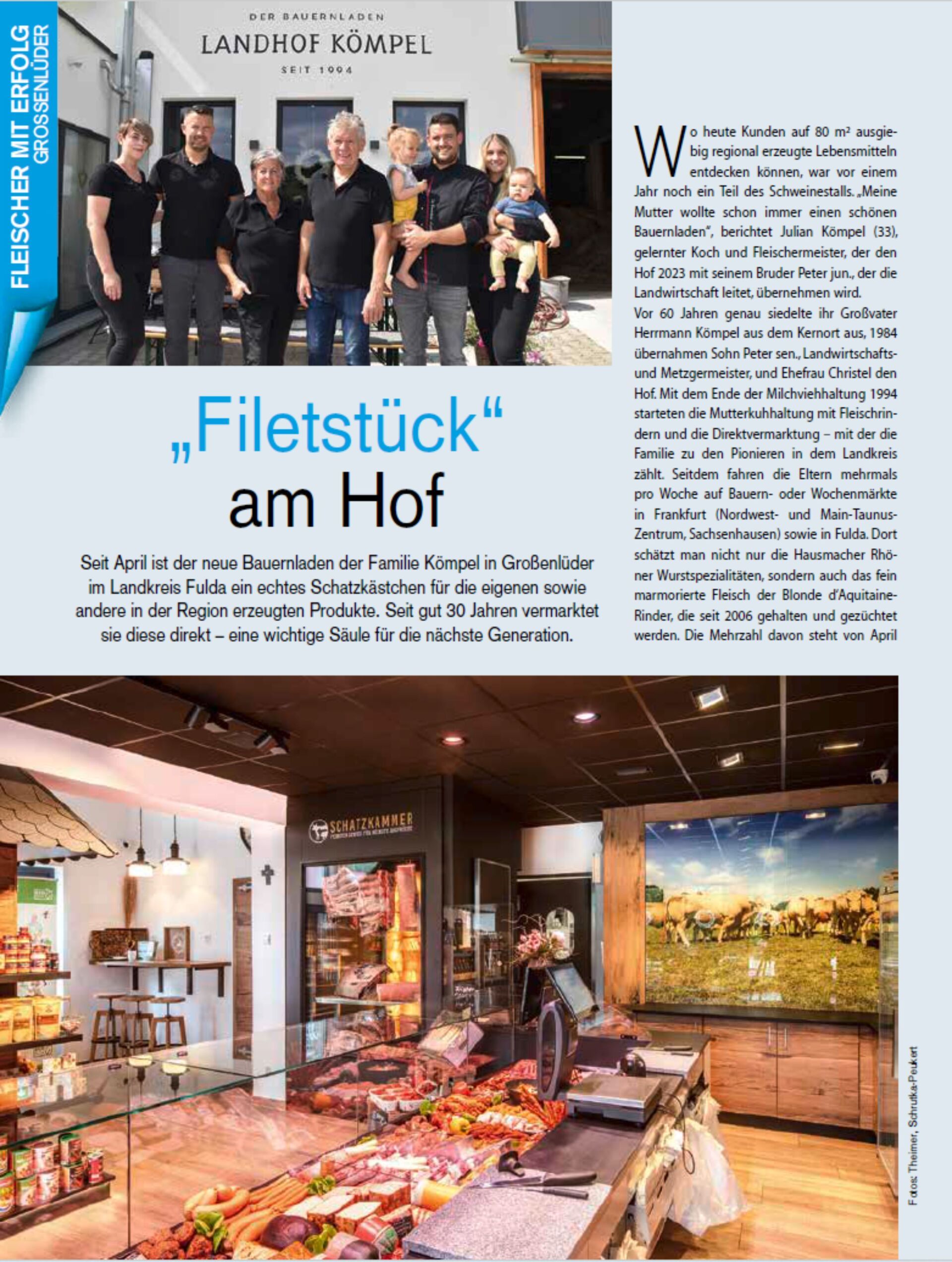 In den Ausgabe 5/2022 der Fachzeitschrift für Direktvermarkter "HOFdirekt" und dem Fachmagazin "Fleischer-Handwerk" wurde der Landhof Kömpel mit seinem neuen Bauernladen vorgestellt. Wir freuen uns über diese Berichterstattung. Lesen Sie selbst!